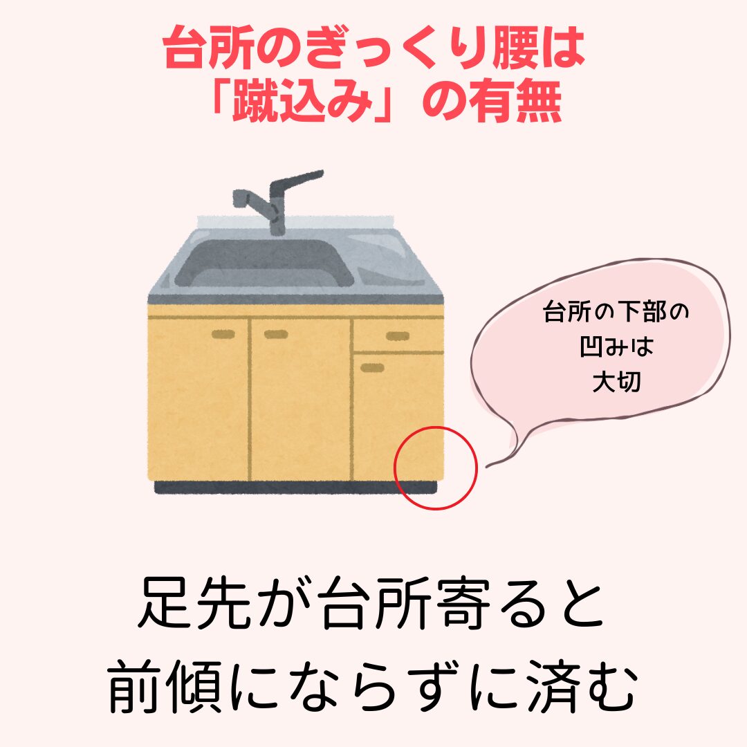 古い台所は作業台や流しが低く、前かがみになりやすい